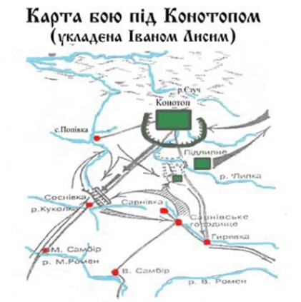 4 липня 1659-го p. Виговський розбив передовий загін московської армії біля села Шаповалівка і підступив до Конотопа.