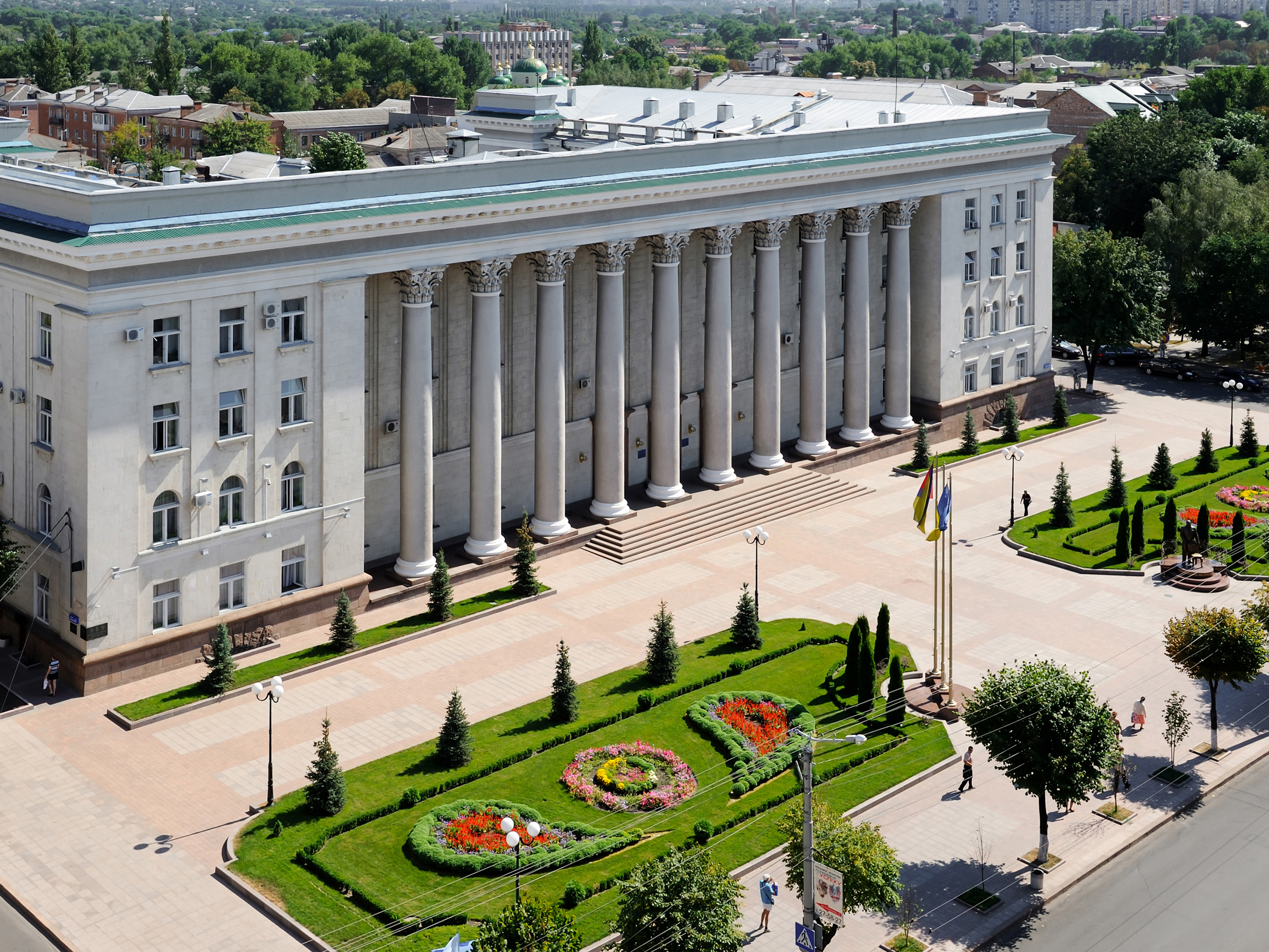В центрі міста розташована монументальна будівля, створена у середині ХХ століття (1954 р.), яка своїми обрисами нагадує давньогрецький храм. Це будинок Кропивницької міської ради. Десять високих класичних колон з листям аканта, широкі сходи, прямокутна форма будівлі, волюти дійсно нагадують нам кращі зразки грецької архітектури. Стиль будівлі – неокласика. Авторами проекту є група талановитих архітекторів на чолі з Л. Дворець. Перед будинком міської ради встановлено пам’ятник видатному міському голові, який працював у місті наприкінці ХІХ – початку ХХ століття, Олександру Миколайовичу Пашутіну. Йому належить девіз, якого він неухильно дотримувався: «Служіння громаді має бути метою життя».