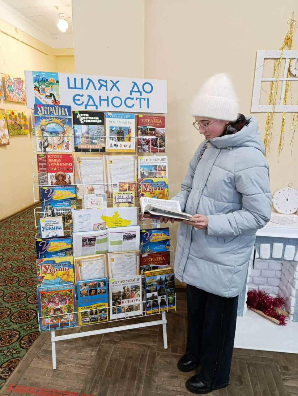 19 січня 2025: Напередодні Дня Злуки українських земель читачі відділу підліткового читання долучилися до огляду книжкової виставки «Шлях до єдності». Представлені видання розкривають історичні події об'єднання України, боротьбу за державність та значення єдності для нашого народу. Книжкова виставка нагадує, що сила України - в згуртованості, спільних цінностях і пам'яті про власну історію.