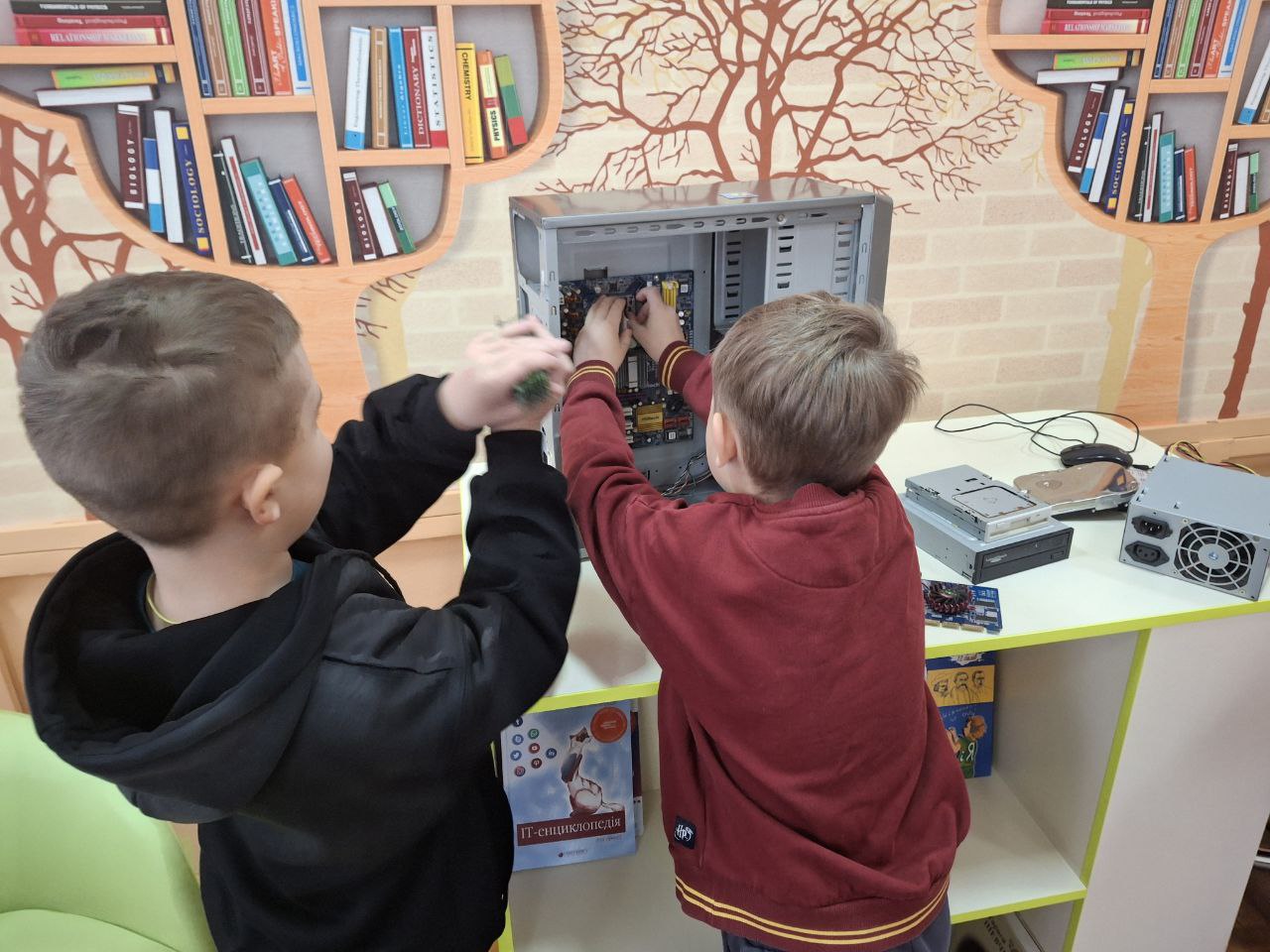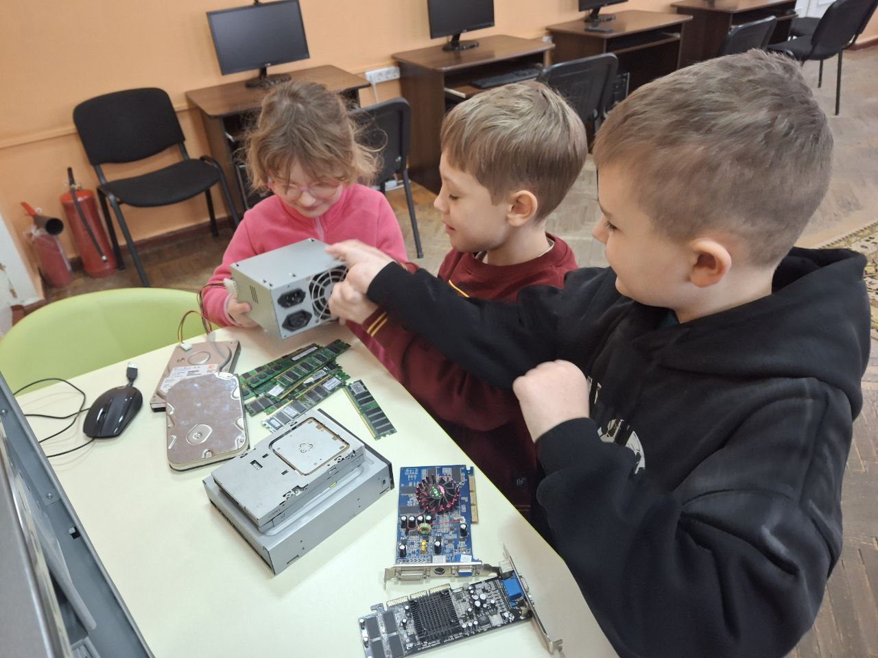 25 січня 2025: Сьогодні відбулося перше заняття з комп’ютерної грамотності. Розпочалося все зі знайомства, а продовжилося цікавим дослідженням комп’ютера. Діти дізналися, з яких частин він складається та які бувають типи комп’ютерів. Заняття проводяться спільно з Code Club Кропивницький.